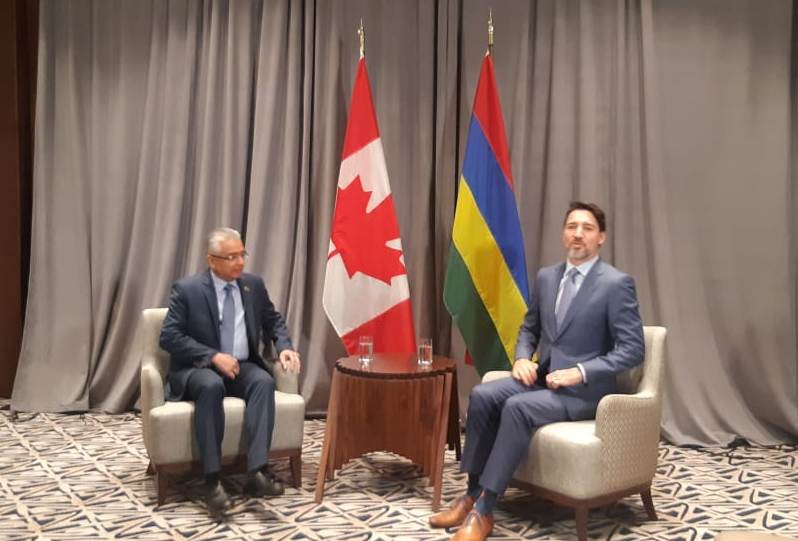Pravind Jugnauth a rencontré le Premier ministre canadien, Justin Trudeau à l’hôtel Hyatt Regency d’Addis-Abeba. Cette tête à tête a eu lieu suite au demande du chef du gouvernement de Canada. Plusieurs sujets ont été évoqués notamment le développement de futures relations entre le géant géopolitique du Nord et l’état insulaire mauricien. Le Canada est un principal acteur international et Maurice compte sur son soutien à plusieurs niveaux, a déclaré le Premier ministre, Pravind Jugnauth. Selon Justin Trudeau, Maurice et le Canada, deux acteurs de la francophonie, partagent des valeurs communes, telles que le pluralisme, les droits de l’homme et la démocratie.
