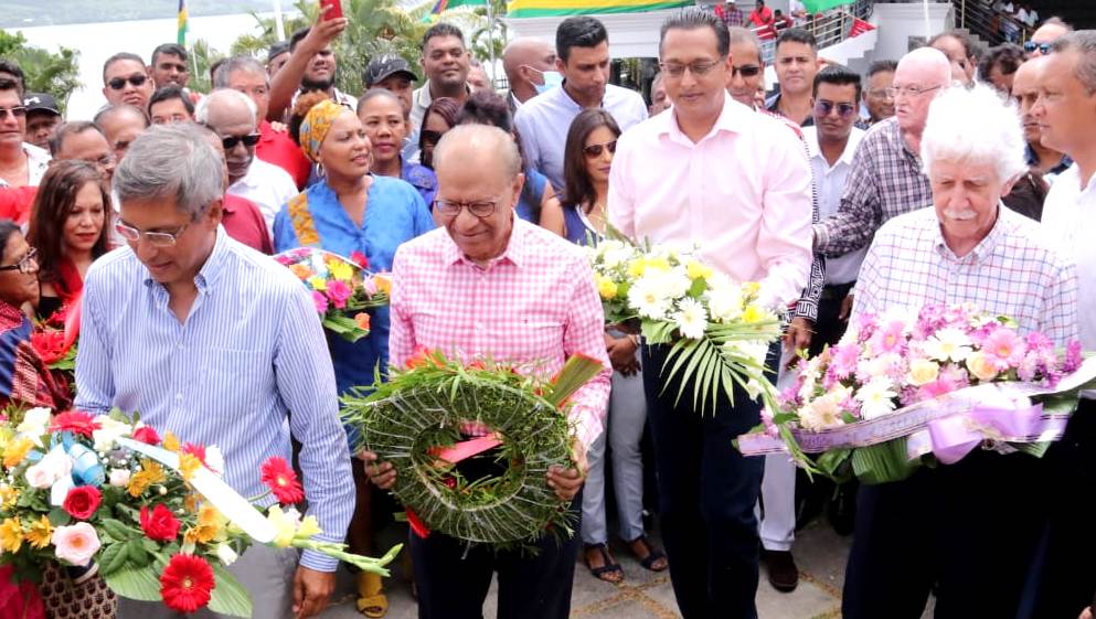 A l’occasion du 186e anniversaire de l’abolition de l’esclavage, les quatre leaders des partis de l’opposition, Navin Ramgoolam, Paul Bérenger, Xavier- Luc Duval et Roshi Bhadain ont participé à un dépôt de gerbes au monument des esclaves, à Pointe-Canon, Mahébourg, ce lundi 1er février.