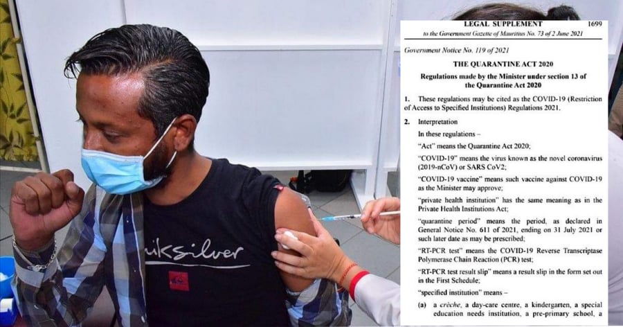 De nouveaux règlements sous la Quarantine Act qui ont été publiés dans la Government Gazette sont devenus officiel. Cela concerne les personnes qui ne sont vaccinés ou qui ont eu au moins une dose de vaccin anti-covid-19, ils/elles n’auront pas d’accès aux hôpitaux, écoles et centres de santé.