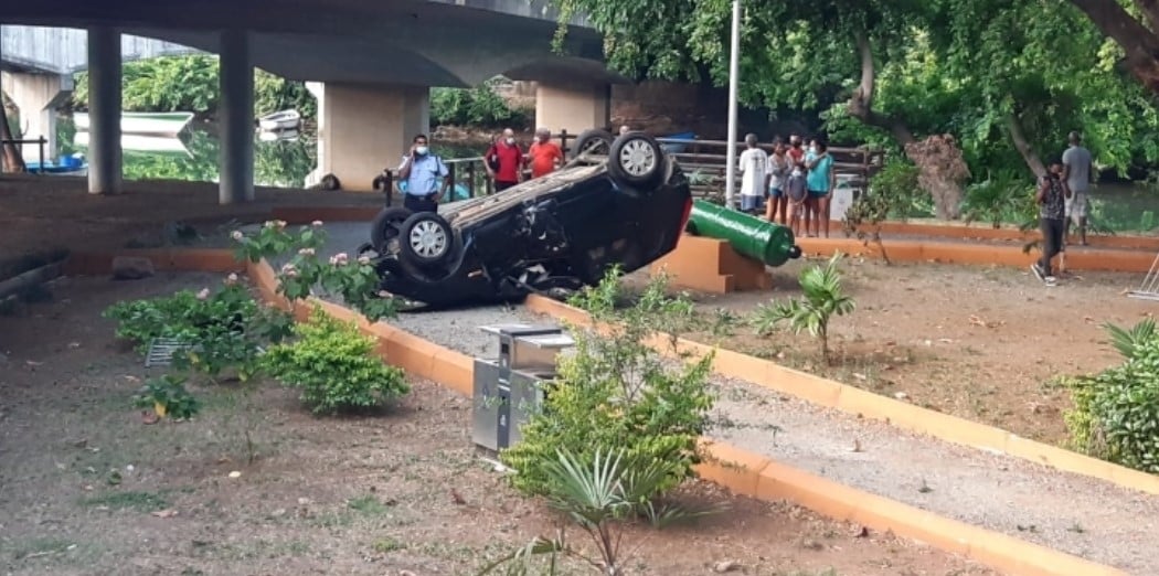 Après qu’une voiture est entrée en collision avec un poids-lourd à Grande-Rivière-Nord-Ouest hier, mardi 15 juin, le véhicule a enfoncé une barrière de sécurité et s’est renversé dans un pont. Selon nos informations, le chauffeur et le passager de la voiture ont été blessés et ils ont été admis à l’hôpital Jeetoo pour des soins nécessaires. La police a ouvert une enquête.