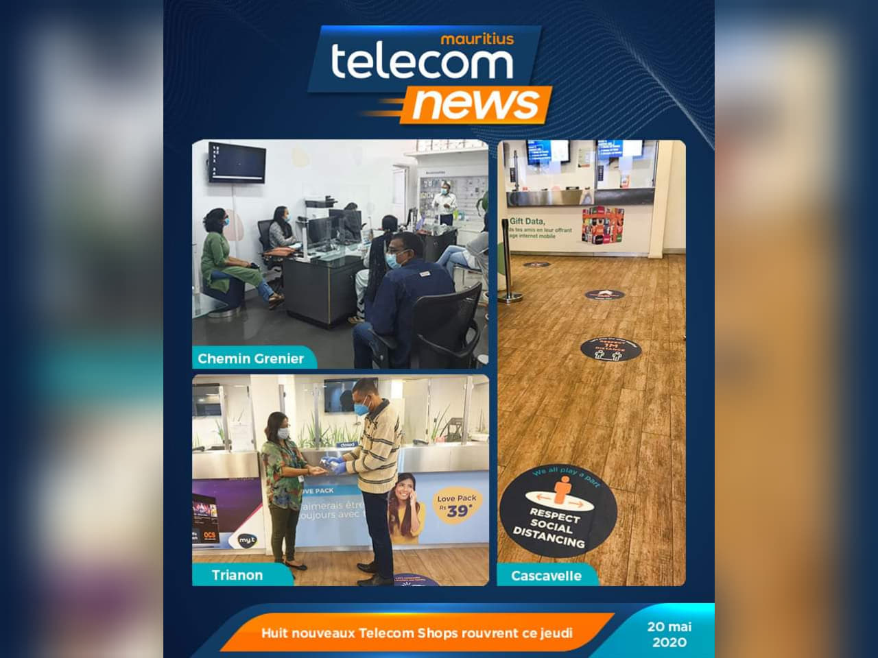 Mauritius Telecom rouvre graduellement ses shops à partir du 15 mai. En effet, six d’entre elles (Telecom Tower à Port Louis, Bagatelle, Grand Baie La Croisette,...