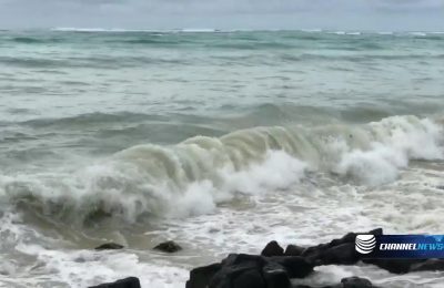 Comme vous pouvez constater dans la vidéo à la plage de la Cuvette, la mer est houleuse et il y a de grosses vagues qui sont générées par le cyclone Gelena...