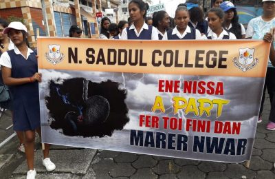 Lors d’une marche pacifique, les élèves du collège N.Saddul était en grand nombre dans les rues de Vacoas pour dire non à la drogue. Ils étaient...